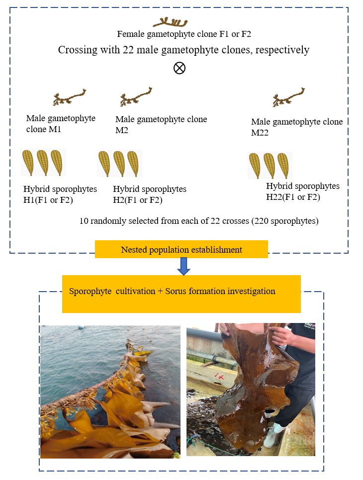 近日,中国科学院海洋研究所科研团队在经济褐藻海带(Saccharina japonica)生殖调控机制研究方面取得重要进展。研究系统揭示了海带生殖期受母系遗传控制的规律,明确指出杂交孢子体的生殖成熟时间主要由雌配子体来源决定。相关成果发表于国际藻类学期刊 Algal Research。