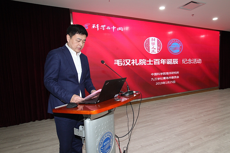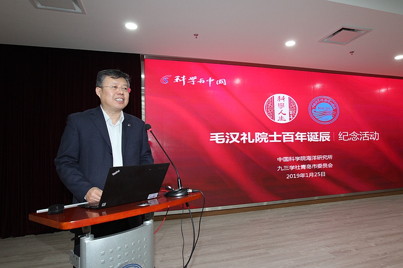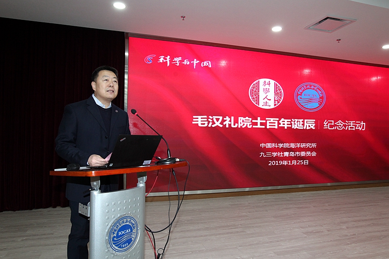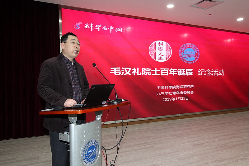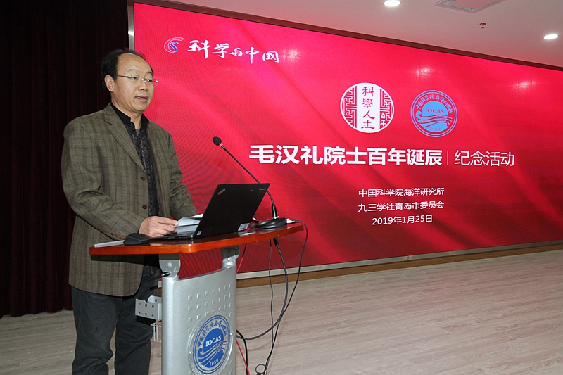 1月25日,中科院海洋所举行纪念毛汉礼院士诞辰100周年座谈会,共同追思先生的家国情怀、学术风范和科学精神,缅怀先生的伟大人格、学术思想和卓越贡献。中国科学院院士胡敦欣,美国工程院院士、中国工程院外籍院士黄鄂,中国工程院院士侯保荣,青岛市委统战部一级巡视员王振海,九三学社青岛市委驻会副主委于鹏,青岛市侨联主席崔作,自然资源部第一海洋研究所党委书记乔方利,中科院海洋所党委书记王辉、党委副书记毕伟等出席会议,毛汉礼家属代表毛彦平、学生代表以及海洋所海洋环流与波动重点实验室科研人员、九三学社中科院海洋所基层委社员等近100人参加活动。毕伟副书记主持活动。