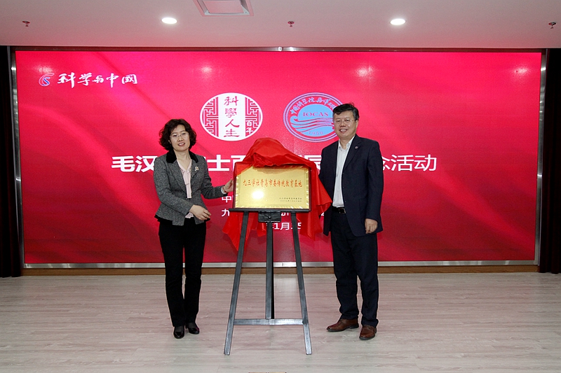 会上还观看了毛汉礼院士生平事迹视频片《归去来兮,译着那片海》。九三学社青岛市委驻会副主委于鹏、中科院海洋所党委书记王辉共同为“九三学社青岛市委传统爱国主义教育基地”揭牌。