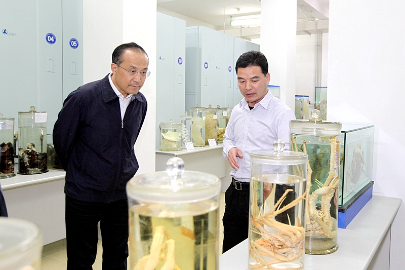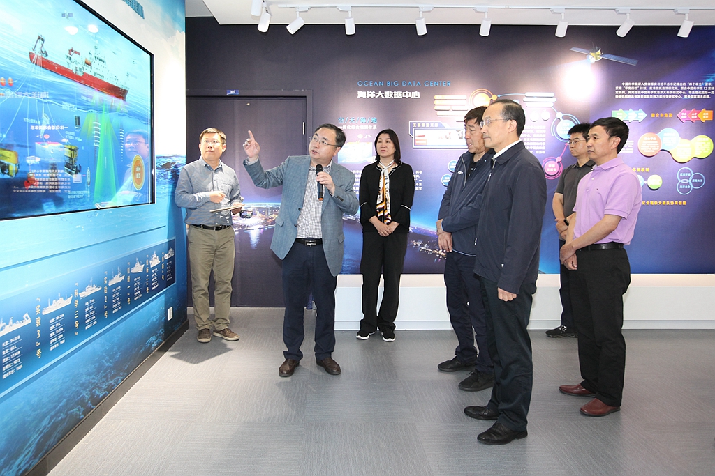 张涛副院长听取了王凡所长关于海洋所与烟台海岸带所融合发展情况、近期代表性科研成果、海洋大科学研究中心筹建进展以及下一步工作思考的汇报,实地考察了海洋健康养殖实验室、海藻种质资源库、中科院海洋生物标本馆深海样品库,详细了解了海洋所在深远海探测研究方面取得的最新成果。在海洋人工智能与大数据中心,张涛副院长调研了“海岸带-近海-大洋”综合立体观测网络、中科院海洋科考船队、高分辨率海底地形图、中国近海海洋环境数值模拟及应用,详细了解了中心数据资源建设、数据产品加工和大数据挖掘应用等情况。
