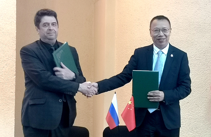 在俄罗斯国家海洋生物科学中心,中心主任维亚切斯拉夫·奥金佐夫及副主任康斯坦丁等接待中科院代表团。国际合作局副局长王振宇、海洋所副所长李超伦、中科院大学海洋学院院长孙松分别介绍了中科院、海洋所、中科院大学海洋学院的情况。双方就共同关注的研究方向、科学问题、未来合作前景、合作模式等进行了深入探讨。随后,在王振宇副局长的见证下,李超伦与维亚切斯拉夫·奥金佐夫签订了两所合作备忘录,这是自2006年两所首次签订合作备忘录以来的再次续签。12年来,两所在生物多样性、海洋生态等海洋领域保持了长期良好的合作关系,合作成效显著,有力促进了中俄两国海洋科技领域的全面协作。新的合作备忘录将在原有合作基础上,进一步加强在深海、北极等相关领域的合作,并将探索构建海外中心促进两所合作。