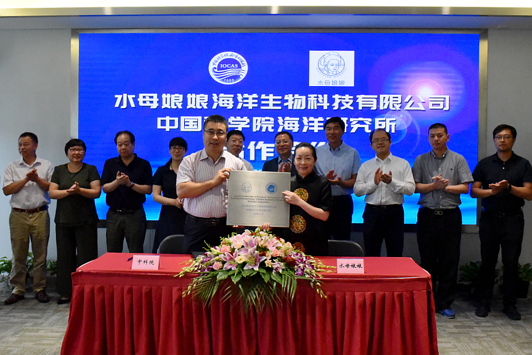 近日,中国科学院海洋所与水母娘娘海洋生物科技有限公司在上海东方美谷举行“水母活性肽与蜇伤解毒剂”成果转化项目签约仪式,上海市奉贤区副区长顾佾等领导和专家50余人参加签约仪式。