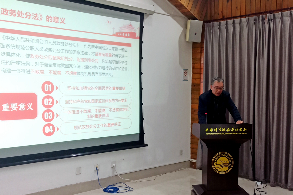 随后监审处处长朱继春同志领学“公职人员政务处分法警示学习”。《政务处分法》自2020年7月1日起施行,专题学习从“充分认识制定意义”“准确把握要求”“违纪违法常见表现形式”三个方面进行阐述,作为新中国成立以来第一部全面系统规范公职人员惩戒制度的国家法律,实现了不同公职人员处分标准的统一,是国家监察制度的重要法律。