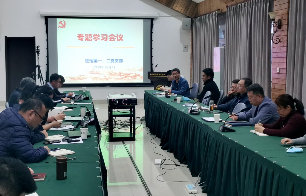 12月1日,管理一、二党支部联合召开专题党课学习会议,所长王凡,党委书记王辉,党委副书记、纪委书记毕伟参加会议,管理二支部书记孟庆勇主持会议。