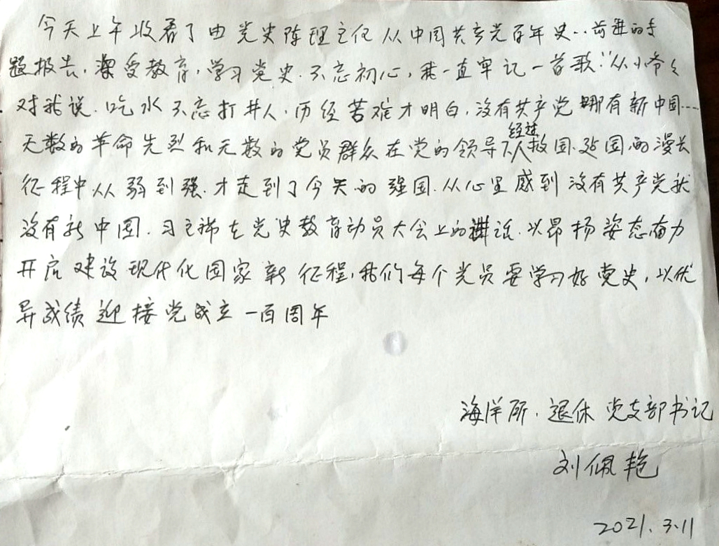 老同志们撰写的学习感言
