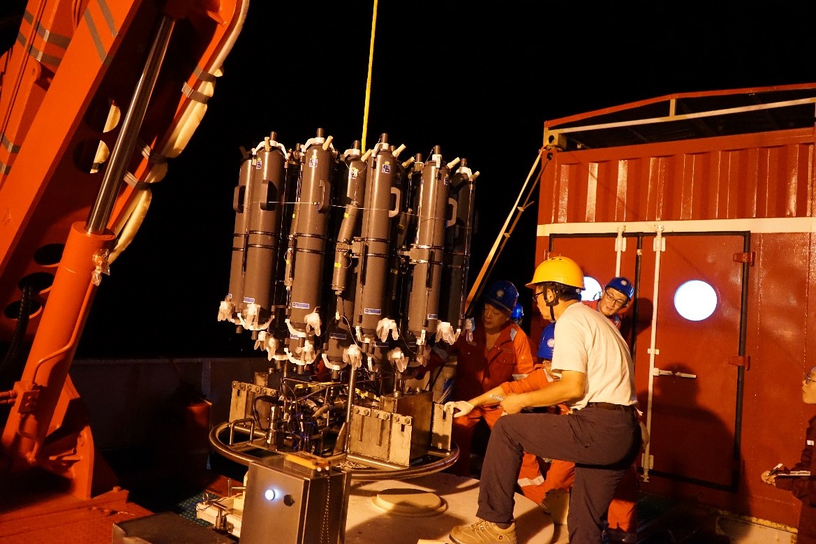 来自中国科学院海洋研究所的科考队长马杰,一方面协助航次首席编排各项作业的具体分工和组织,关心帮助队员科考期间的生活所需,另一方面还将自己编入各项作业排班,并负责LADCP等具体作业内容,在自己的岗位上不分昼夜、兢兢业业地工作,为航次的顺利执行做出了重要贡献。