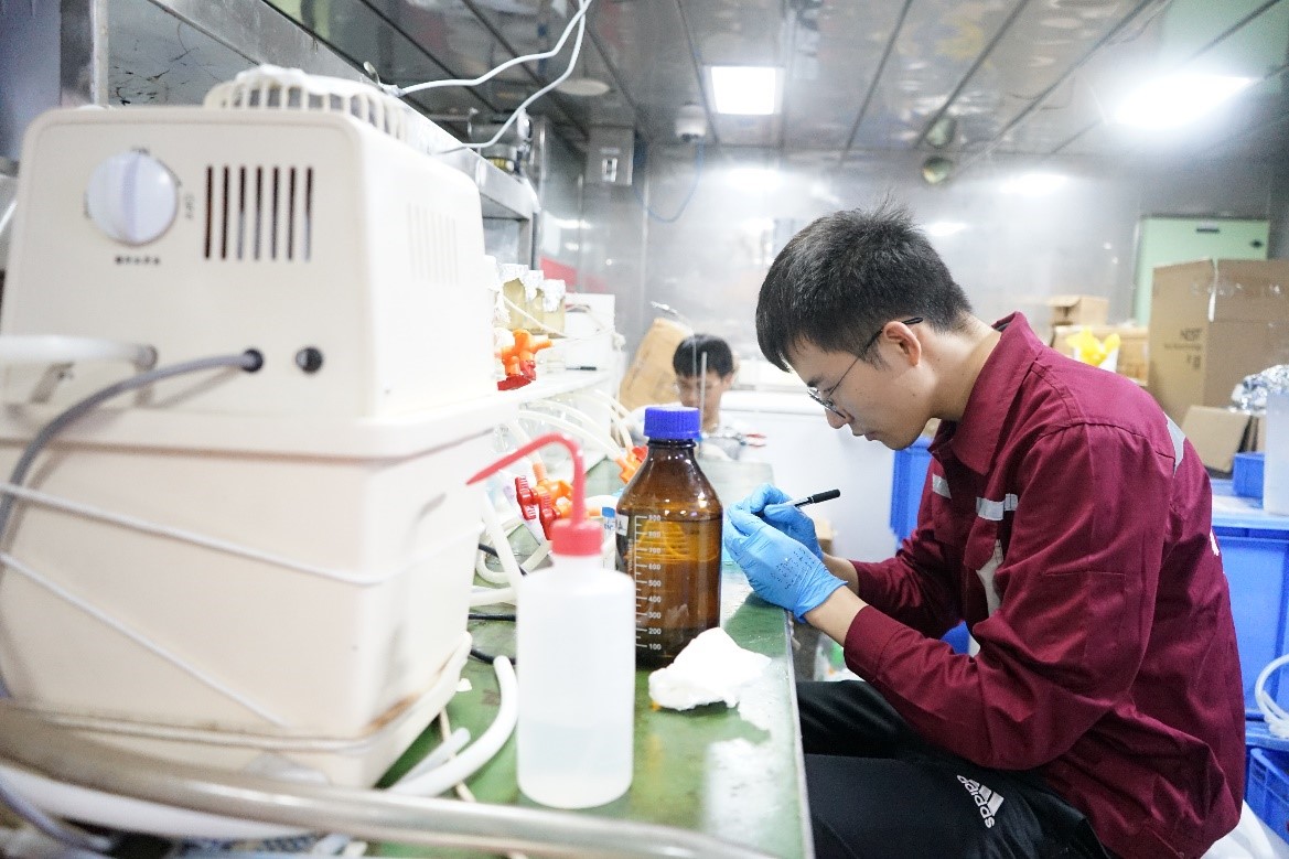 朱义族在实验室处理海水样品