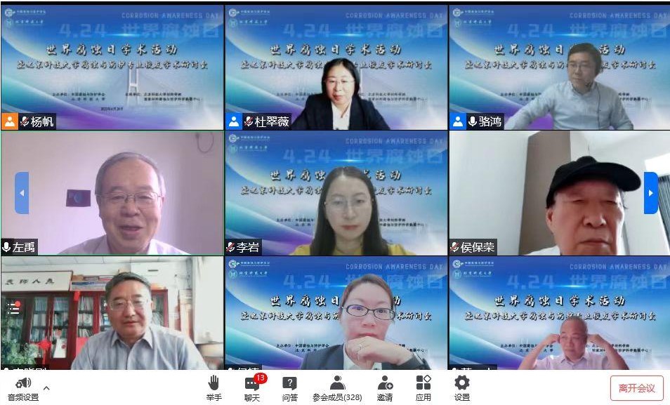 4月24日是第14个世界腐蚀日。为促进腐蚀与防护理论研究、技术发展和知识传播,加强政府、工业界及公众对腐蚀的了解和重视,早日实现碳达峰与碳中和的目标,中国腐蚀与防护学会、北京科技大学联合主办世界腐蚀日学术活动。会议以线上形式召开,十余位行业专家作学术报告,中科院海洋环境腐蚀与生物污损重点实验室有60余名师生参加本次线上学术活动,中国工程院院士侯保荣作为中国腐蚀与防护学会荣誉理事长受邀参会并做总结发言。