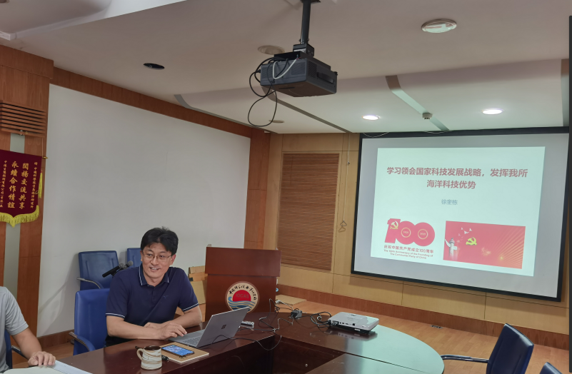 徐奎栋同志以《学习领会国家科技发展战略,发挥我所海洋科技优势》为题讲授党课,从五个方面论述怎样“努力成为世界主要科学中心和创新高地”。他指出,中国要强盛、要复兴,就一定要大力发展科学技术,我国广大科技工作者要把握大势、抢占先机,直面问题、迎难而上,瞄准世界科技前沿,引领科技发展方向,肩负起历史赋予的重任,勇做新时代科技创新的排头兵。徐奎栋同志指出分类室要发挥特色学科优势,巩固长板,将分类学科发展与国家需求结合起来。最后,支部委员董栋同志带领大家学习了《中国共产党组织工作条例》。