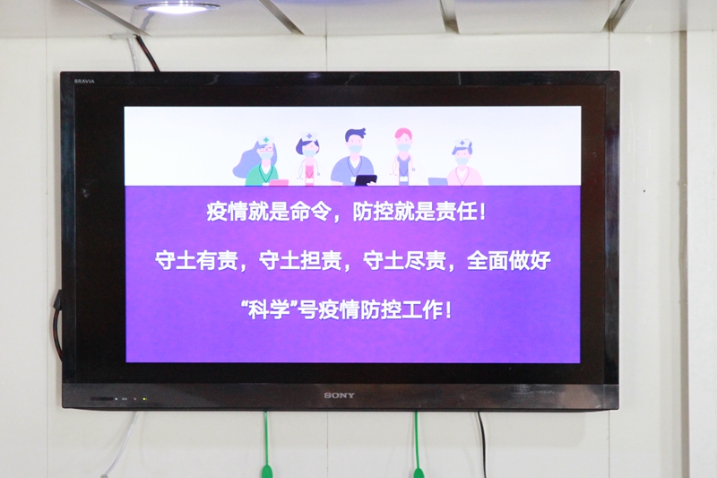 为确保航次顺利开展,科考船运管中心进行常规备航的同时,强化疫情防控机制,成立了“科学”号新冠肺炎疫情防控工作小组,结合工作实际制定了《“科学”轮针对新冠肺炎疫情航次防控措施及应急预案》,落实各项防控措施,全面加强疫情防控。根据需求配备了足够数量的疫情防控物资并对所有区域按规定定期消毒;提前对出海人员轨迹、状态进行摸底,每天进行体温测量登记,并在出海前由专业测试机构对航次科考人员进行咽、鼻试子联合检测,确保出海人员身体状况良好;随船配有专业全科医生,进一步提高出海期间船上医疗保障条件,确保出海人员身体健康。
