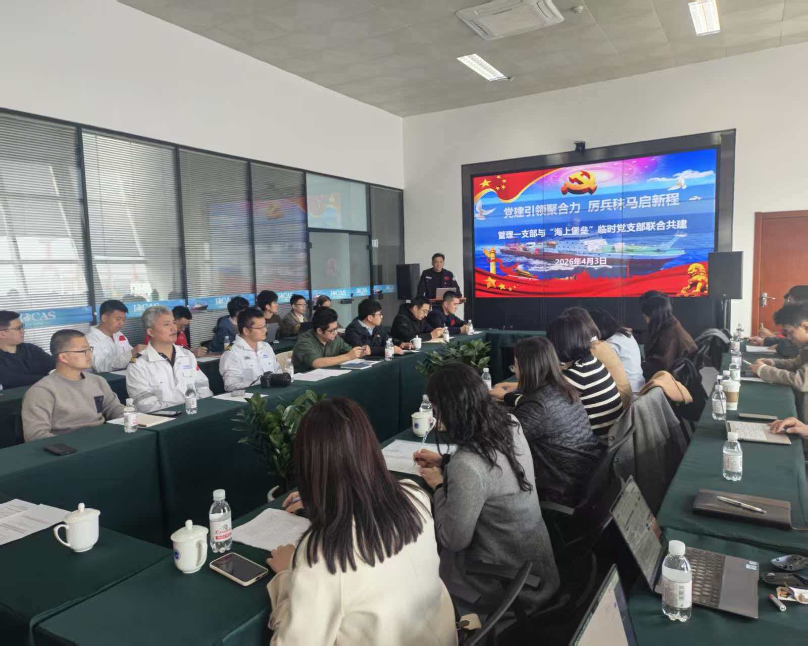 为切实发挥党建引领作用,保障“科学”号海洋科学调查航次安全顺利实施,4月3日,管理第一党支部与“科学”轮“海上堡垒”临时党支部以“党建引领聚合力 护航深蓝启新程”为主题,在海洋所西海岸园区联合开展共建活动,为即将启航的深海远航次筑牢政治根基、安全防线和团队合力。党委书记、副所长王辉参加活动,活动由党委委员、运管中心党支部书记李雷溪同志主持。