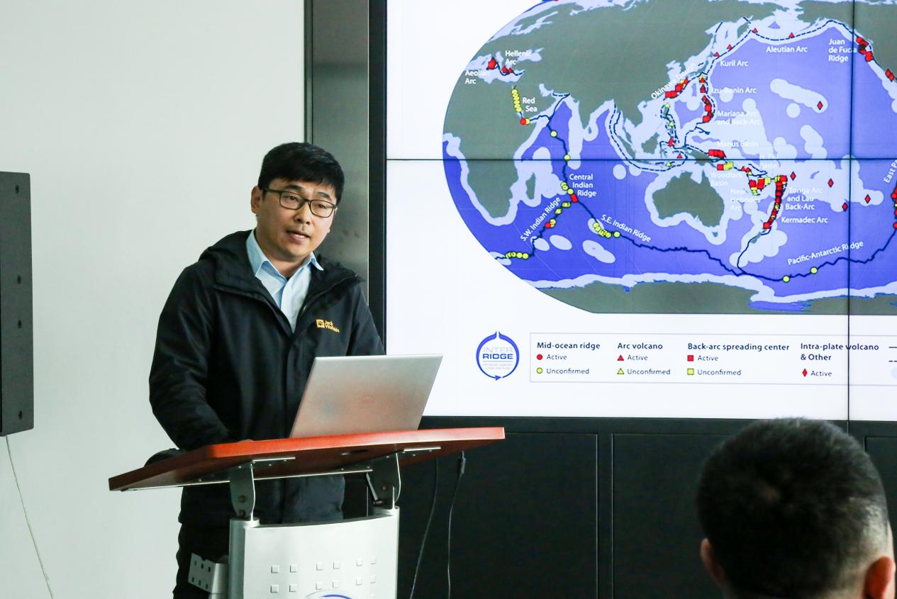 活动伊始,王辉书记宣读了《关于成立“科学”轮 2601 航次“海上堡垒”临时党支部的通知》,明确临时党支部在航次中的战斗堡垒作用,为党建引领科考工作划定方向。航次首席科学家、临时党支部书记张均龙同志详细介绍了“科学”轮2601 “深海化能生态系统生命起源与生物适应调查”航次的整体情况,使参与人员全面掌握航次任务重点与核心要求。