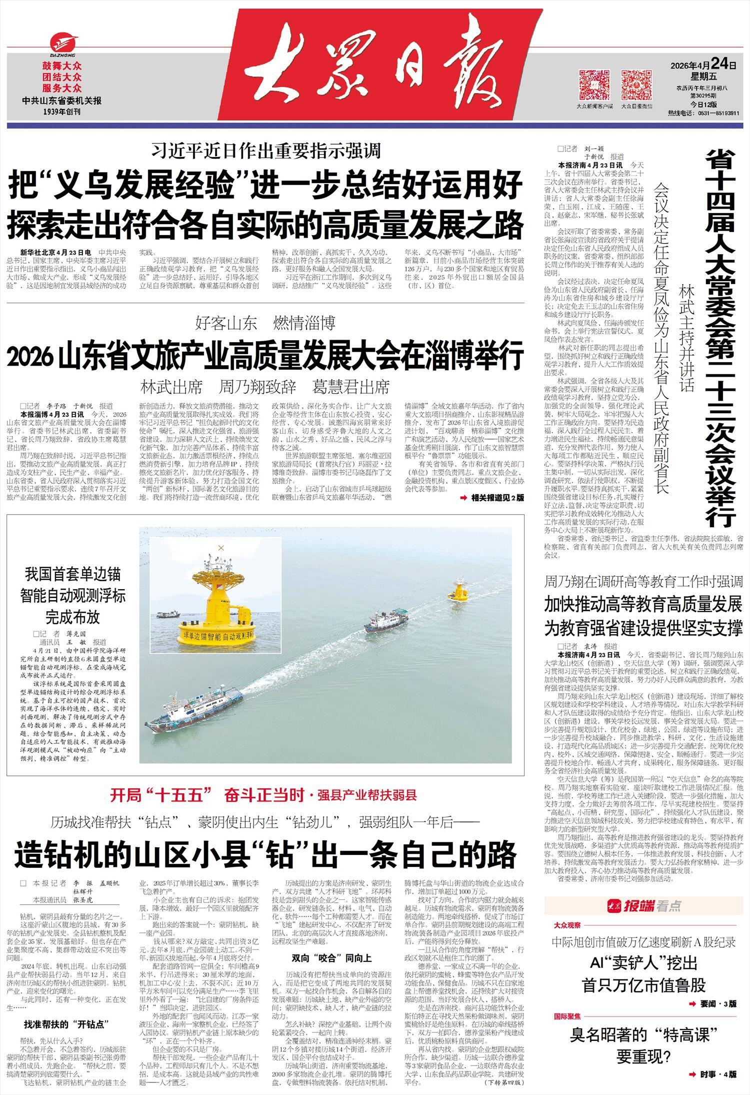 【大众日报】我国首套单边锚智能自动观测浮标完成布放