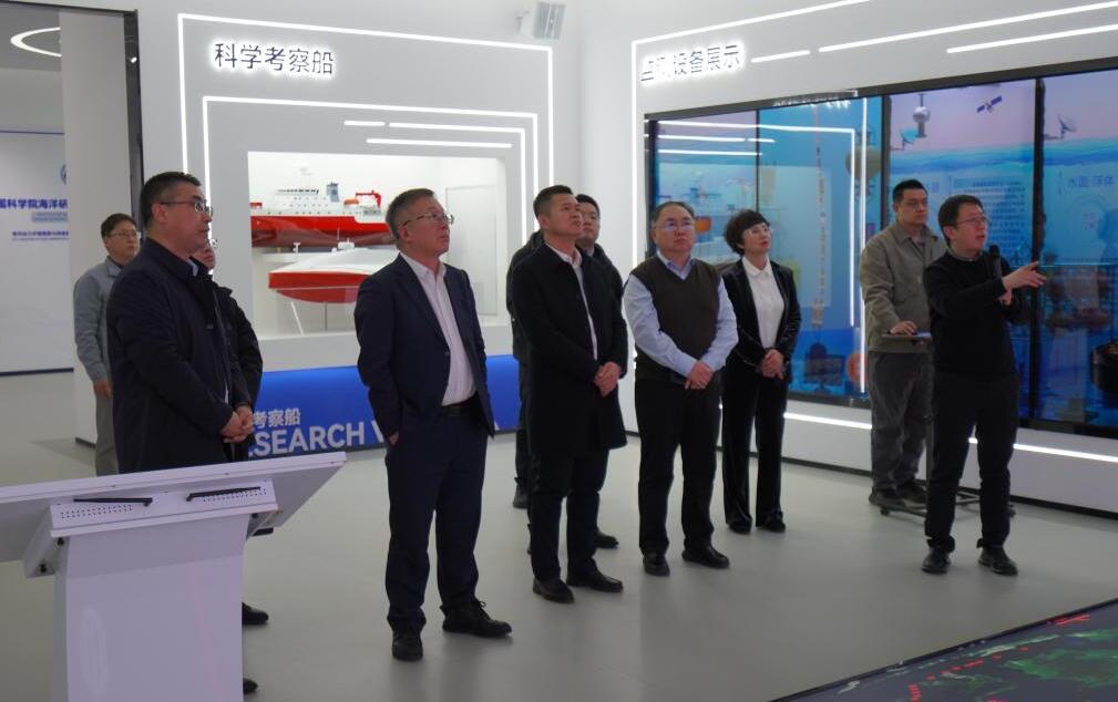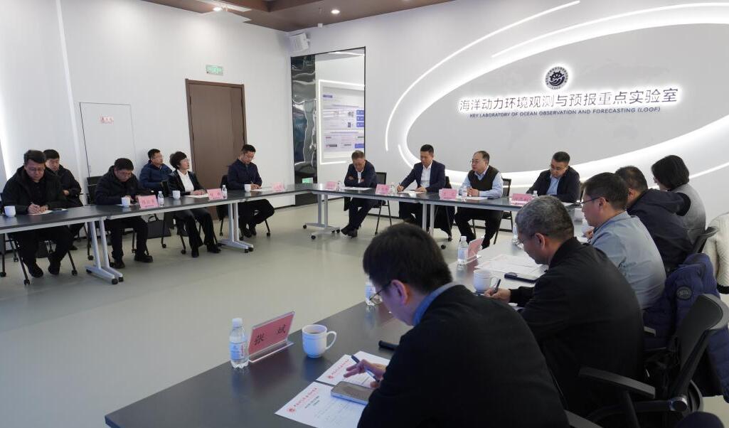 殷敬伟一行还参观了海洋动力环境观测与预报重点实验室。办公室、科研处、研究生部、综合保障处、海洋大数据中心等相关负责人参加座谈。